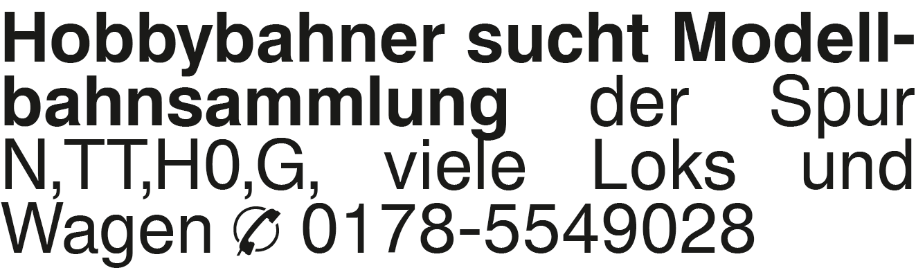 Hobbybahner sucht Modellb der Spur N,TT,H0,G, viele Loks und Wagen Tel. 0178-5549028
