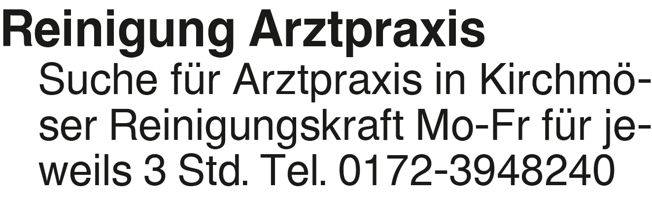 Reinigung Arztpraxis Such Suche für Arztpraxis in Kirchmöser Reinigungskraft Mo-Fr für jeweils 3 Std. Tel. 0172-3948240Das könnte Sie auch interessieren