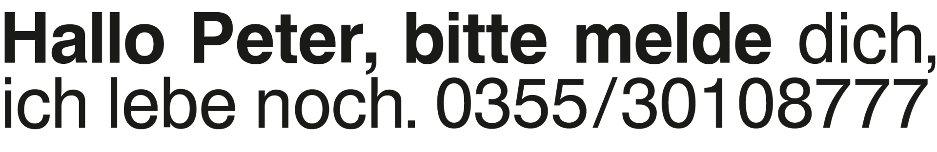 Hallo Peter, bitte melde Hallo Peter, bitte melde dich, ich lebe noch. 0355/30108777Das könnte Sie auch interessieren