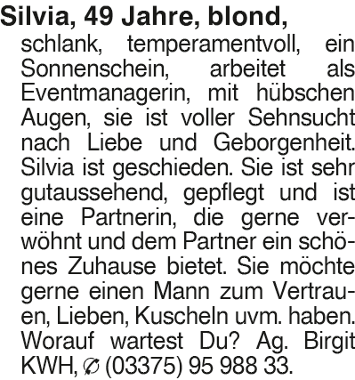 Erscheinungsdatum: Anzeige vom 11.10.2025 in der Rubrik "Ehe-/ Partnervermittlungen"