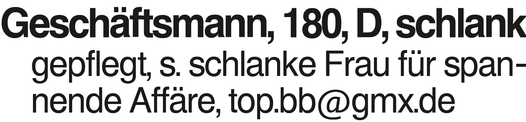 Geschäftsmann, 180, D, sc Geschäftsmann, 180, D, schlank gepflegt, s. schlanke Frau für spannende Affäre, top.bb@gmx.de