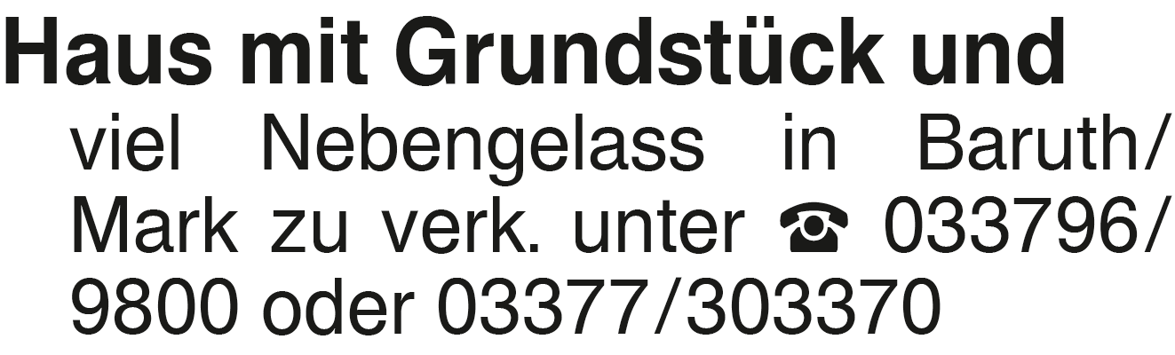 Haus mit Grundstück und v Haus mit Grundstück und viel Nebengelass in Baruth/Mark zu verk. unter 033796/9800 oder 03377/303370Kontakt