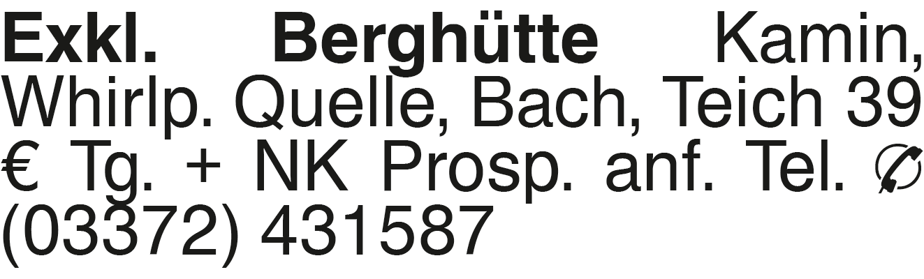 Exkl. Berghütte Kamin, Wh Kamin, Whirlp. Quelle, Bach, Teich 39 EUR Tg. + NK Prosp. anf. Tel. Tel. (03372) 431587Kontakt