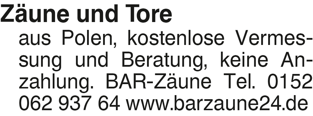 Zäune und Tore aus Polen, aus Polen, kostenlose Vermessung und Beratung, keine Anzahlung. BAR-Zäune Tel. 0152 062 937 64 www.barzaune24.deDas könnte Sie auch interessieren