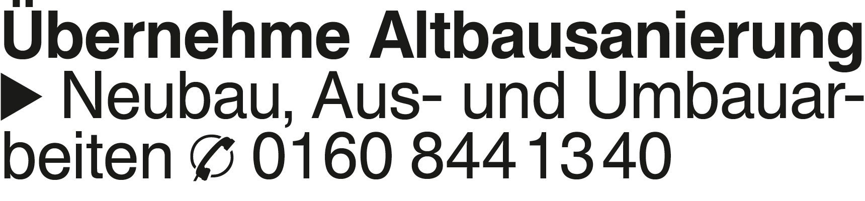 Übernehme Altbausanierung Übernehme Altbausanierung Neubau, Aus- und Umbauarbeiten 0160 844 13 40Das könnte Sie auch interessieren