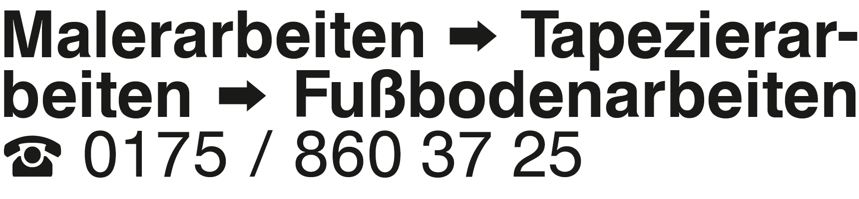 Malerarbeiten Tapezierarbeiten Malerarbeiten Tapezierarbeiten Fußbodenarbeiten 0175 / 860 37 25Das könnte Sie auch interessieren