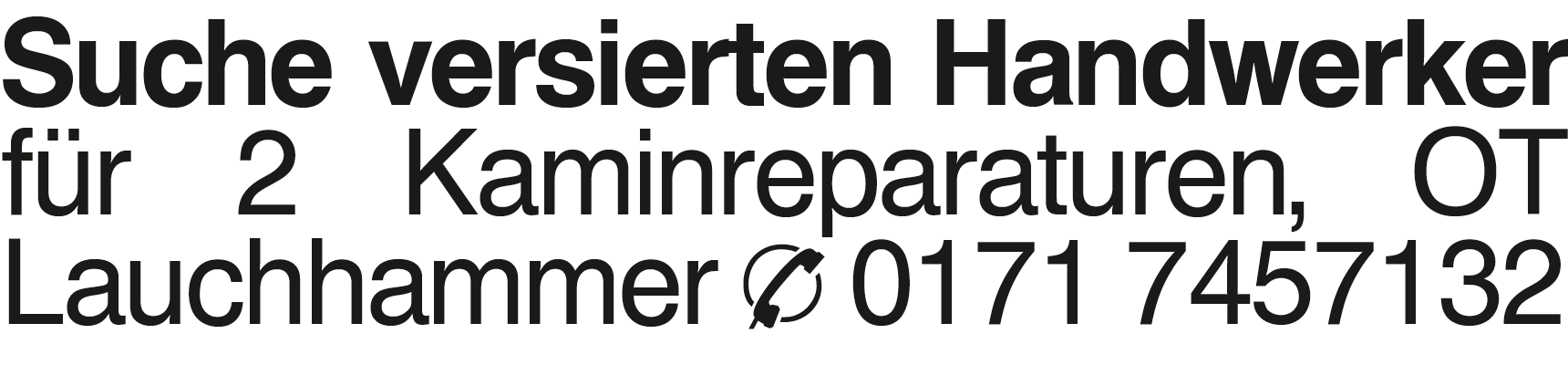 Suche versierten Handwerk Suche versierten Handwerker für 2 Kaminreparaturen, OT Lauchhammer 0171 7457132Kontakt