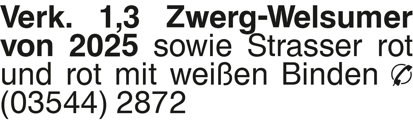 Verk. 1,3 Zwerg-Welsumer sowie Strasser rot und rot mit weißen Binden Tel. (03544) 2872Das könnte Sie auch interessieren