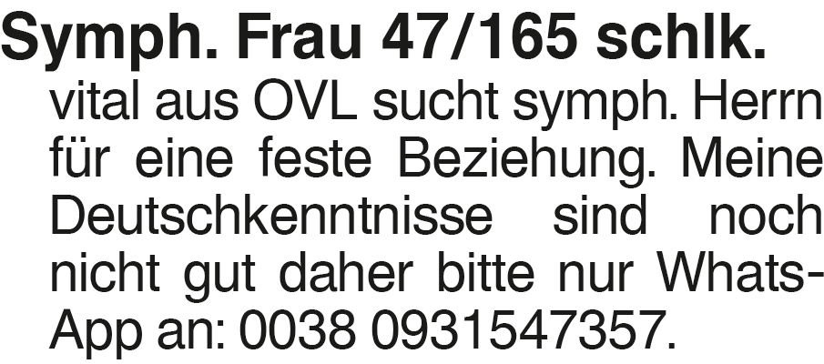 Erscheinungsdatum: Anzeige vom 17.1.2026 in der Rubrik "Sie sucht Ihn"