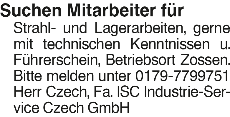 Anzeige vom 17.1.2026 in der Rubrik "Stellenangebot allgemein"