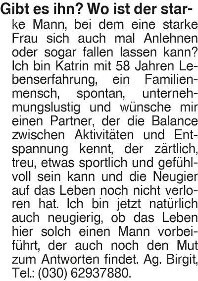 Erscheinungsdatum: Anzeige vom 17.1.2026 in der Rubrik "Sie sucht Ihn"