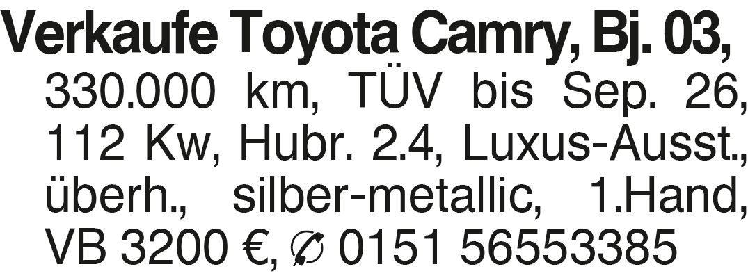 Anzeige vom 17.1.2026 in der Rubrik "Toyota"