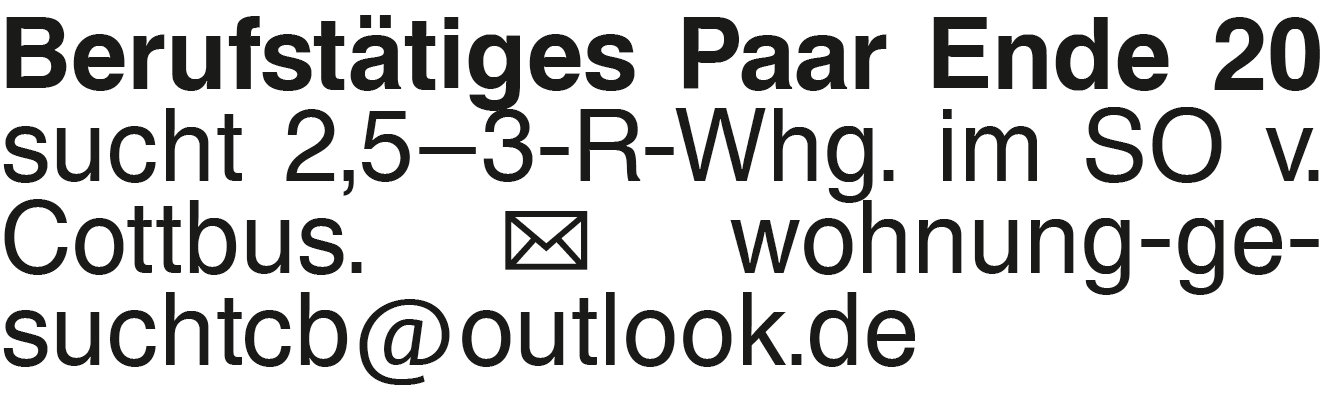Berufstätiges Paar Ende 2 sucht 2,5#3-R-Whg. im SO v. Cottbus. wohnung-gesuchtcb@outlook.deKontakt
