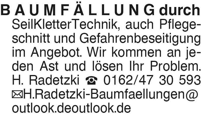 Die Anzeigen können auch in allen Zweigstellen aufgegeben werden.