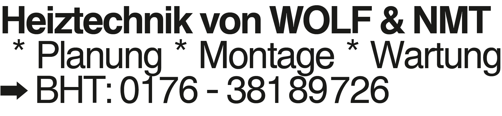 Heiztechnik von WOLF & NMT Heiztechnik von WOLF & NMT Planung Montage Wartung BHT: 0176 - 381 89 726Das könnte Sie auch interessieren