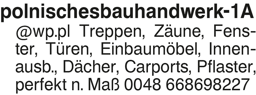 Erscheinungsdatum: Anzeige vom 14.2.2026 in der Rubrik "Handwerkerdienste"