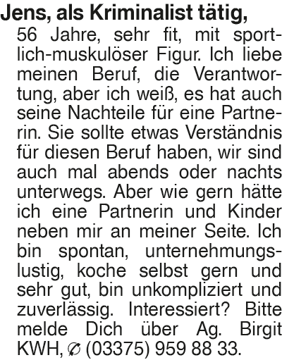Erscheinungsdatum: Anzeige vom 28.2.2026 in der Rubrik "Ehe-/ Partnervermittlungen"