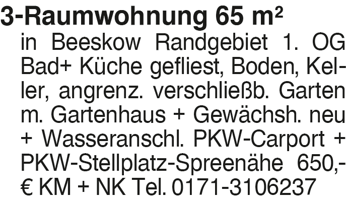 Anzeige vom 28.2.2026 in der Rubrik "3 - 3,5 - Zimmer - Wohnung"