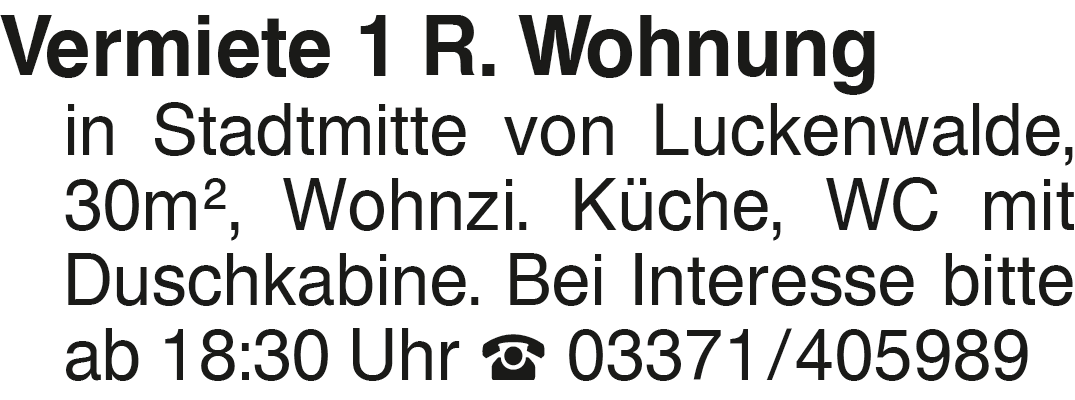 Anzeige vom 28.2.2026 in der Rubrik "1 - 1,5 - Zimmer - Wohnung"