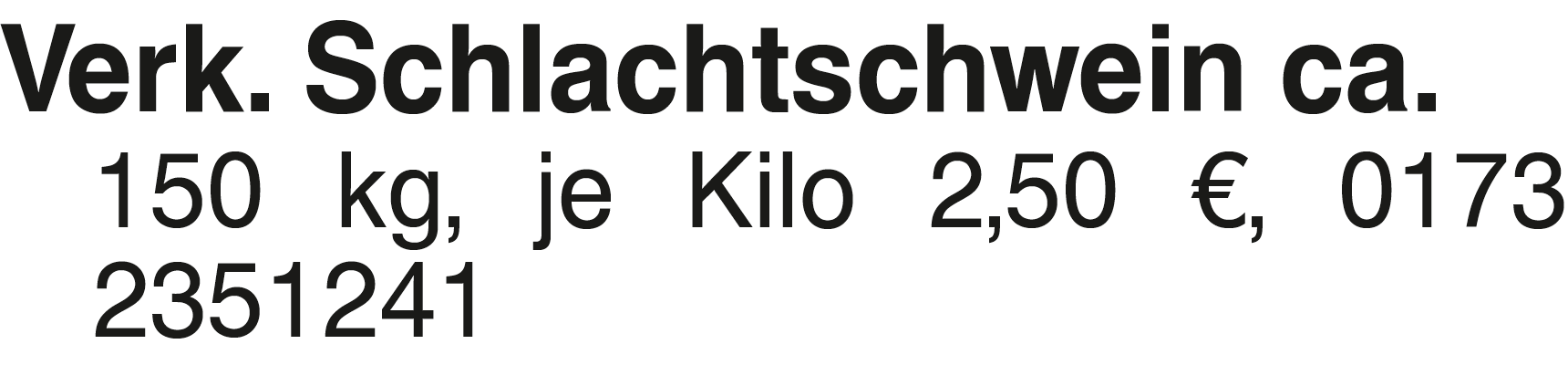 Verk. Schlachtschwein Verk. Schlachtschwein ca. 150 kg, je Kilo 2,50 EUR, 0173 2351241Das könnte Sie auch interessieren