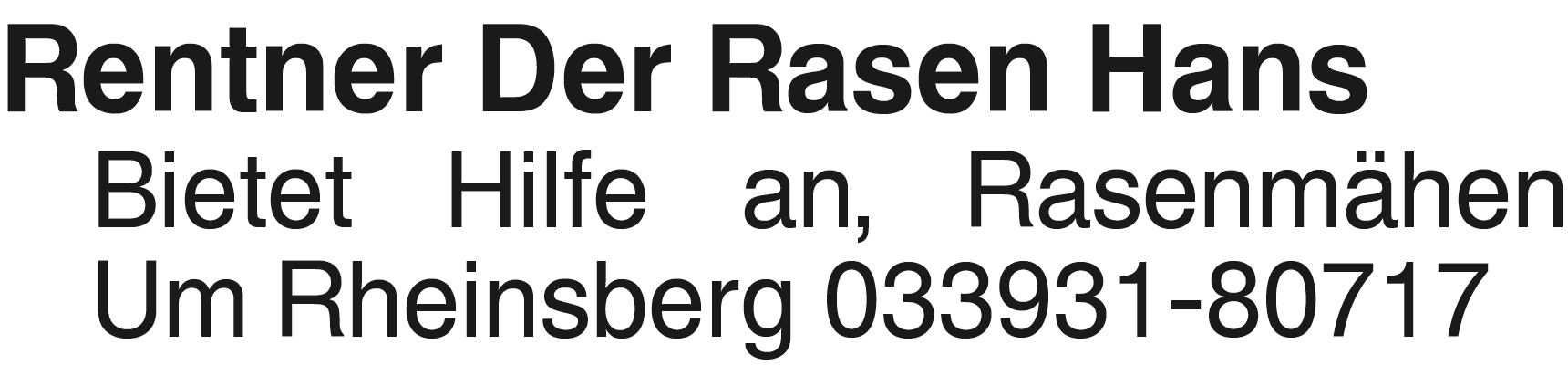 Rentner DerRasenHans biet Rentner Der Rasen Hans Bietet Hilfe an, Rasenmähen Um Rheinsberg 033931-80717