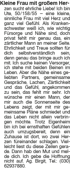 Erscheinungsdatum: Anzeige vom 18.4.2026 in der Rubrik "Sie sucht Ihn"