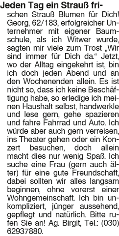 Anzeige vom 18.4.2026 in der Rubrik "Er sucht Sie"