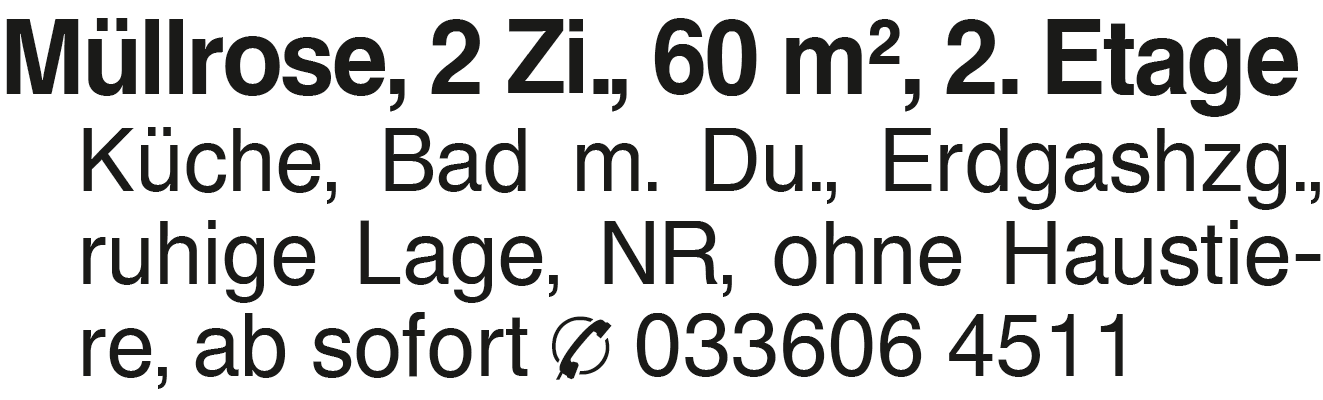 Müllrose, 2 Zi., 60 m2, 1 2-Zi.-Whg.,