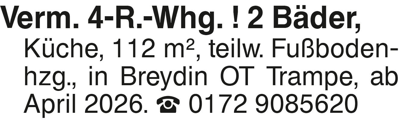 Verm. 4-R.-Whg. ! 2 Bäder 4-Zi.-Whg.,