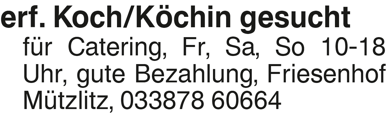 Rubrik: Stellenangebot Gastronomie / Touristik