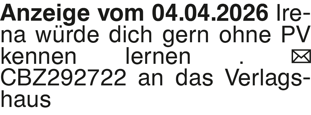 Anzeige vom 04.04.2026 Ir Irena würde dich gern ohne PV kennen lernen .Das könnte Sie auch interessieren