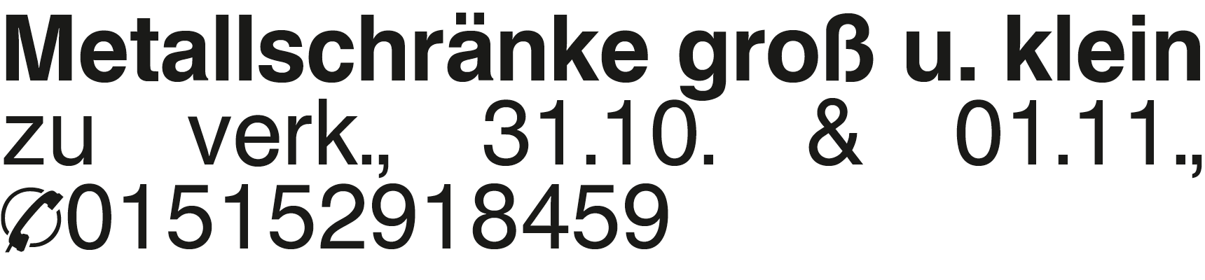 Metallschränke groß u. kl Metallschränke groß u. klein zu verk., 31.10. & 01.11., 015152918459Das könnte Sie auch interessieren