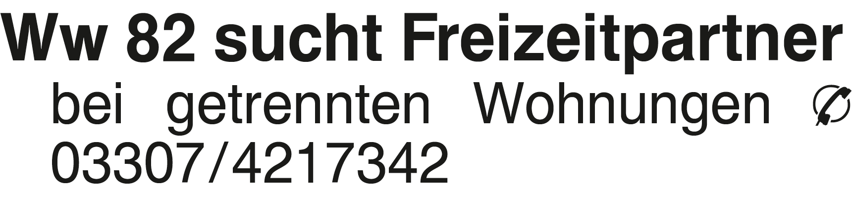 Ww 82 sucht Freizeitpartn Ww 82 sucht Freizeitpartner bei getrennten Wohnungen 03307/4217342Das könnte Sie auch interessieren