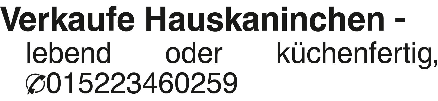 Verkaufe Hauskaninchen - Verkaufe Hauskaninchen - lebend oder küchenfertig, 015223460259