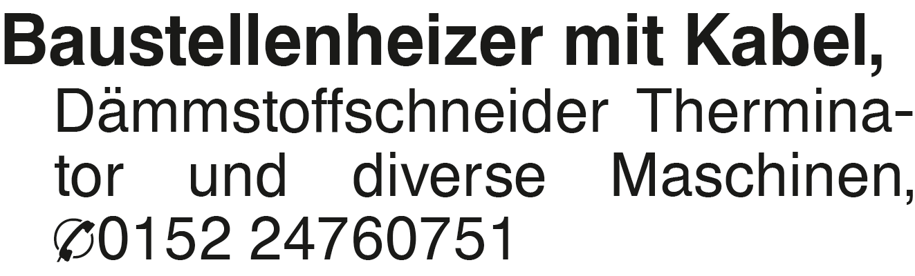 Baustellenheizer mit Kabe Baustellenheizer mit Kabel, Dämmstoffschneider Therminator und diverse Maschinen, 0152 24760751