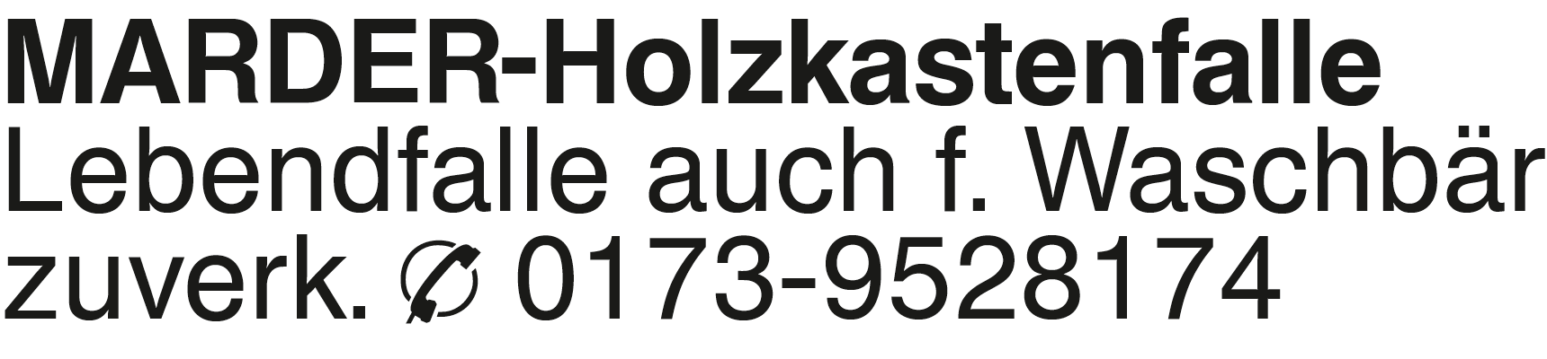 MARDER-Holzkastenfalle Le Lebendfalle auch f. Waschbär zuverk. Tel. 0173-9528174Das könnte Sie auch interessieren