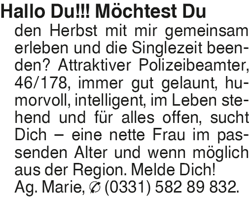 Anzeige vom 29.11.2025 in der Rubrik "Ehe-/ Partnervermittlungen"