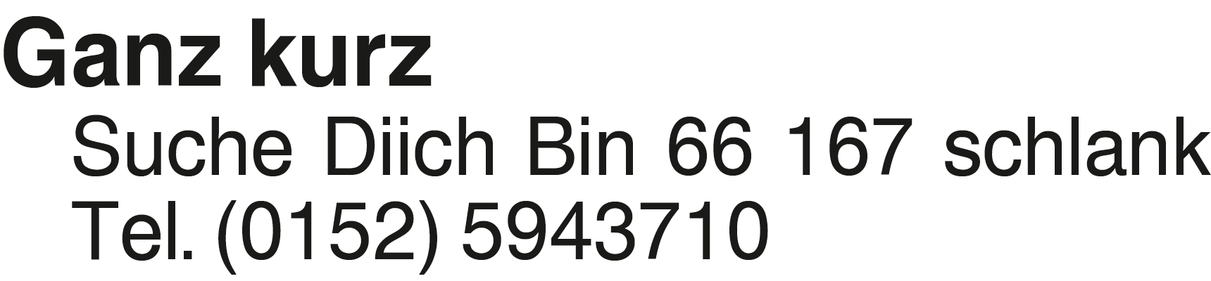Ganz kurz Suche Diich Bin Suche Diich Bin 66 167 schlank Tel. (0152) 5943710Das könnte Sie auch interessieren
