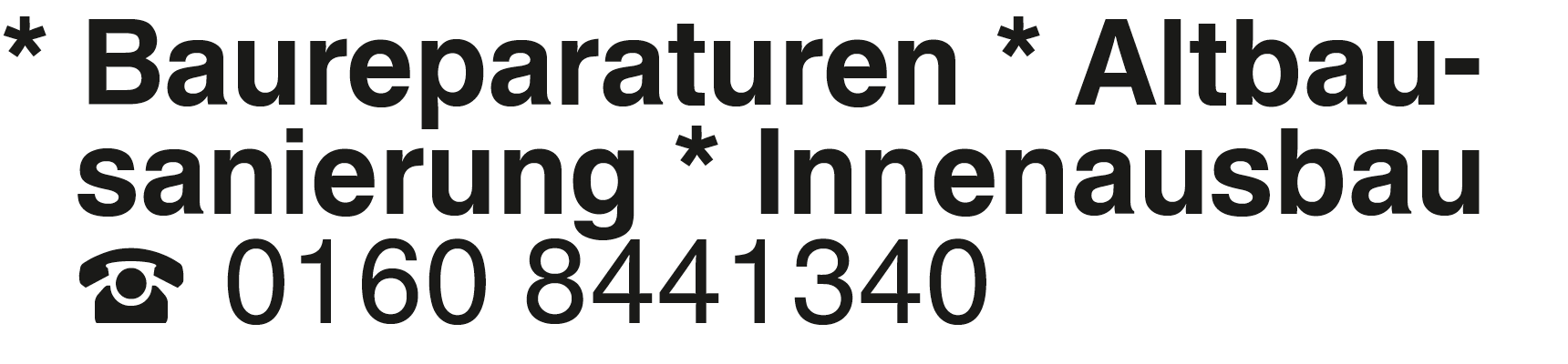 Baureparaturen Altbausanierung Baureparaturen Altbau- sanierung Innenausbau 0160 8441340Das könnte Sie auch interessieren