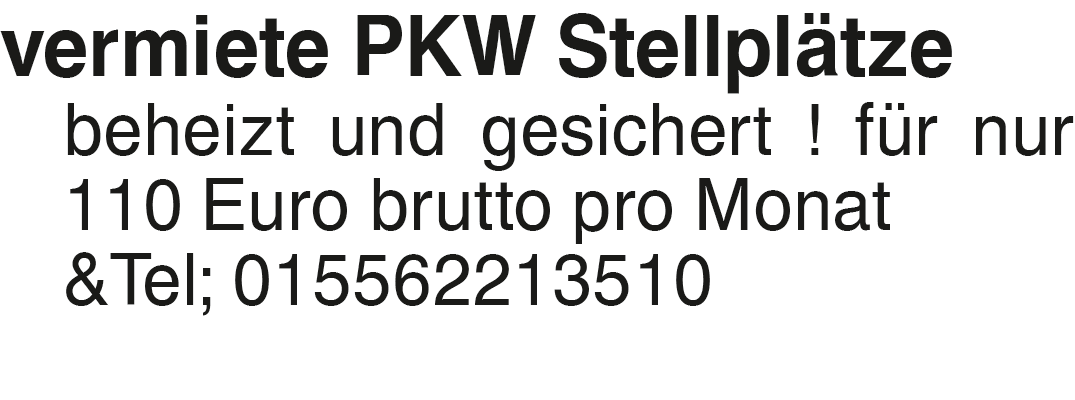 Anzeige vom 13.12.2025 in der Rubrik "Stellplätze"