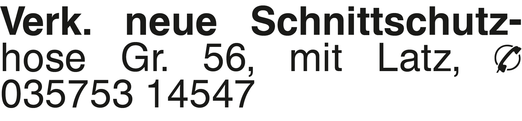 Verk. neue Schnittschutzh Verk. neue Schnittschutzhose Gr. 56, mit Latz, 035753 14547Das könnte Sie auch interessieren