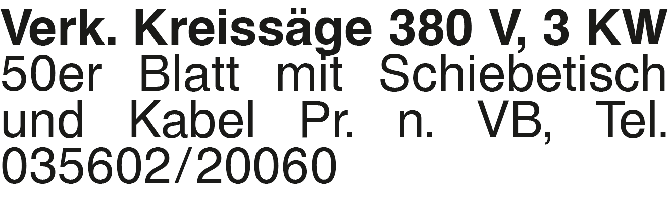 Verk. Kreissäge 380 V, 3 Verk. Kreissäge 380 V, 3 KW 50er Blatt mit Schiebetisch und Kabel Pr. n. VB, Tel. 035602/20060Kontakt