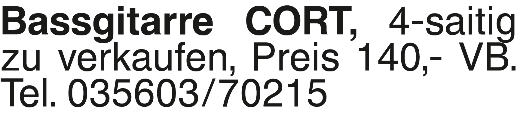 Bassgitarre CORT, 4-saiti Bassgitarre CORT, 4-saitig zu verkaufen, Preis 140,- VB. Tel. 035603/70215Kontakt
