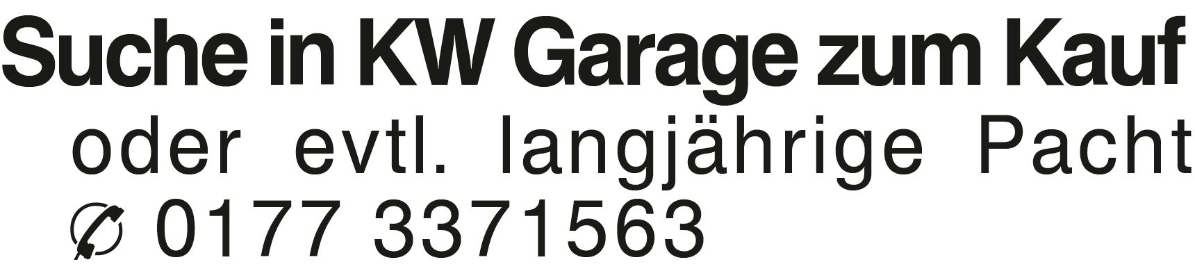 Suche in KW Garage zum Ka Suche in KW Garage zum Kauf oder evtl. langjährige Pacht 0177 3371563
