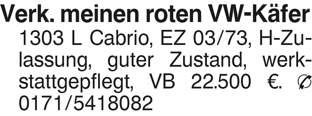 Anzeige vom 7.3.2026 in der Rubrik "VW"