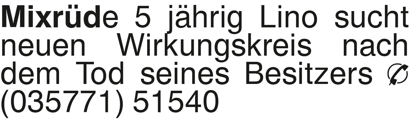 Mixrüde 5 jährig Lino suc Lino sucht neuen Wirkungskreis nach dem Tod seines Besitzers Tel. (035771) 51540Das könnte Sie auch interessieren