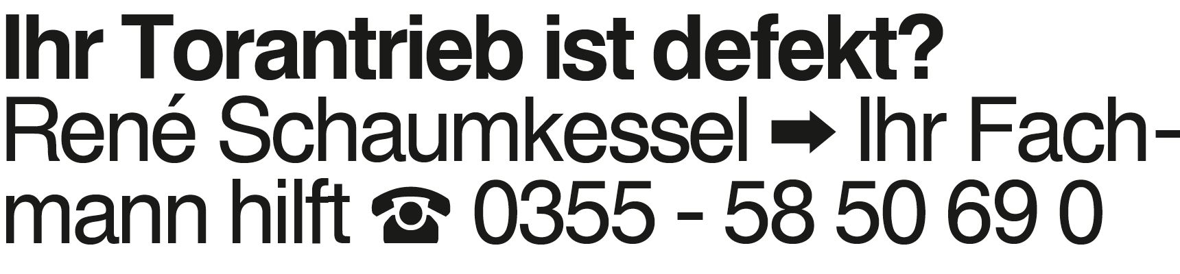 Ihr Torantrieb ist defekt Ihr Torantrieb ist defekt? René Schaumkessel Ihr Fachmann hilft 0355 - 58 50 69 0