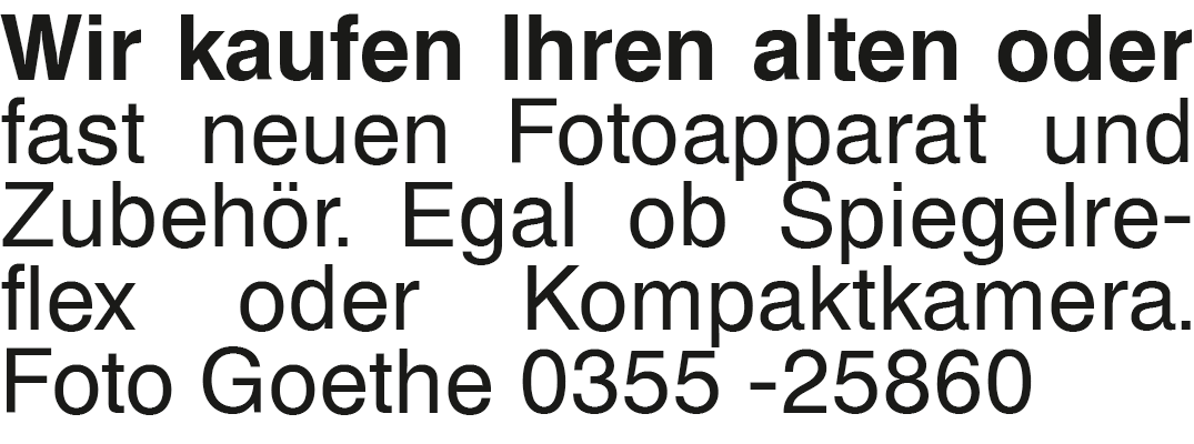 Wir kaufen Ihren alten od Wir kaufen Ihren alten oder fast neuen Fotoapparat und Zubehör. Egal ob Spiegelreflex oder Kompaktkamera. Foto Goethe 0355 -25860Das könnte Sie auch interessieren