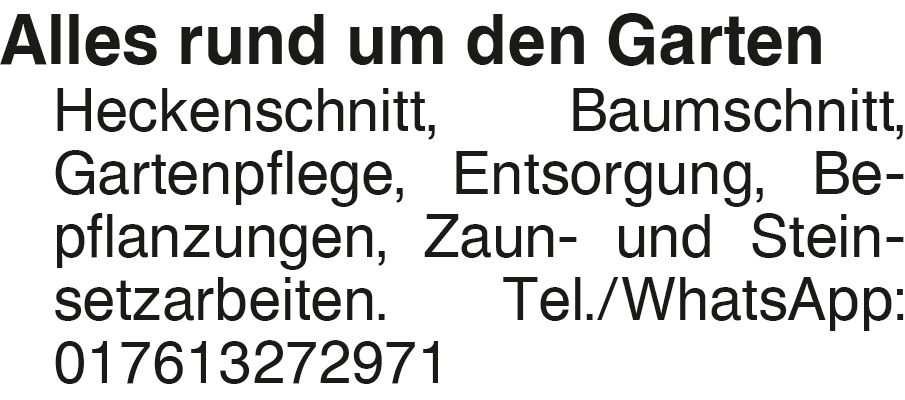 Erscheinungsdatum: Anzeige vom 4.4.2026 in der Rubrik "Handwerkerdienste"