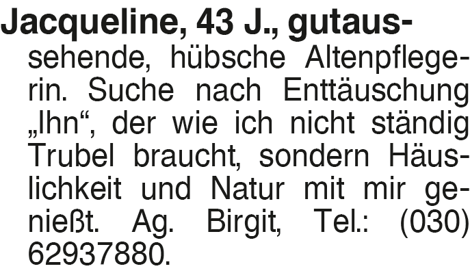 Anzeige vom 11.4.2026 in der Rubrik "Sie sucht Ihn"